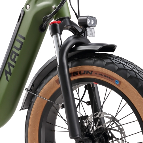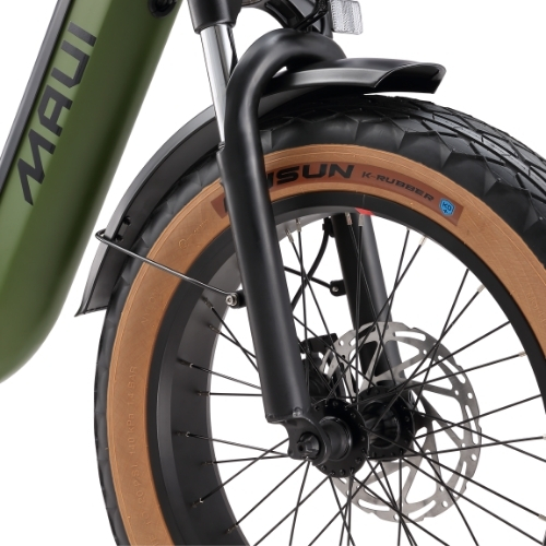The BOBBY: Maui Bikes’ exciting new creation! For 2025, this model features a sophisticated torque sensor that analyzes pedal pressure for perfectly adapted motor assistance with remarkable smoothness. This folding step-through bike combines a powerful 500W Bafang motor and quality Samsung battery, complemented by precise hydraulic brakes. Versatile by design, the BOBBY excels in both urban and trail settings thanks to its front suspension, wide 100 mm tires, and practical fenders — the ideal balance between performance and riding pleasure!